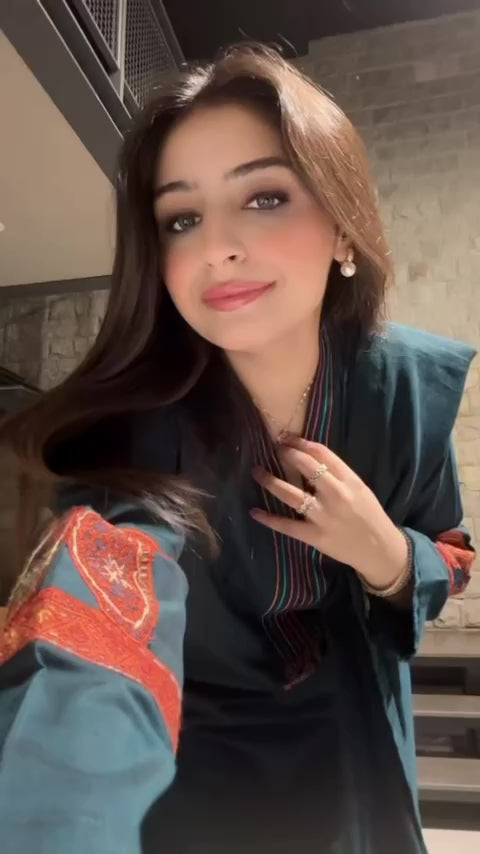 Dark Green Cotton Katan Dress with Rust Kashmiri Pashmina Borders