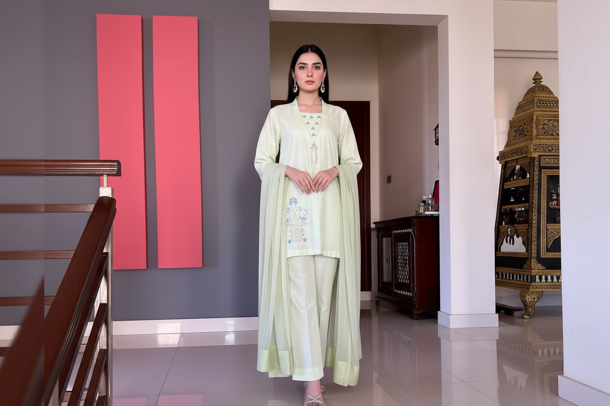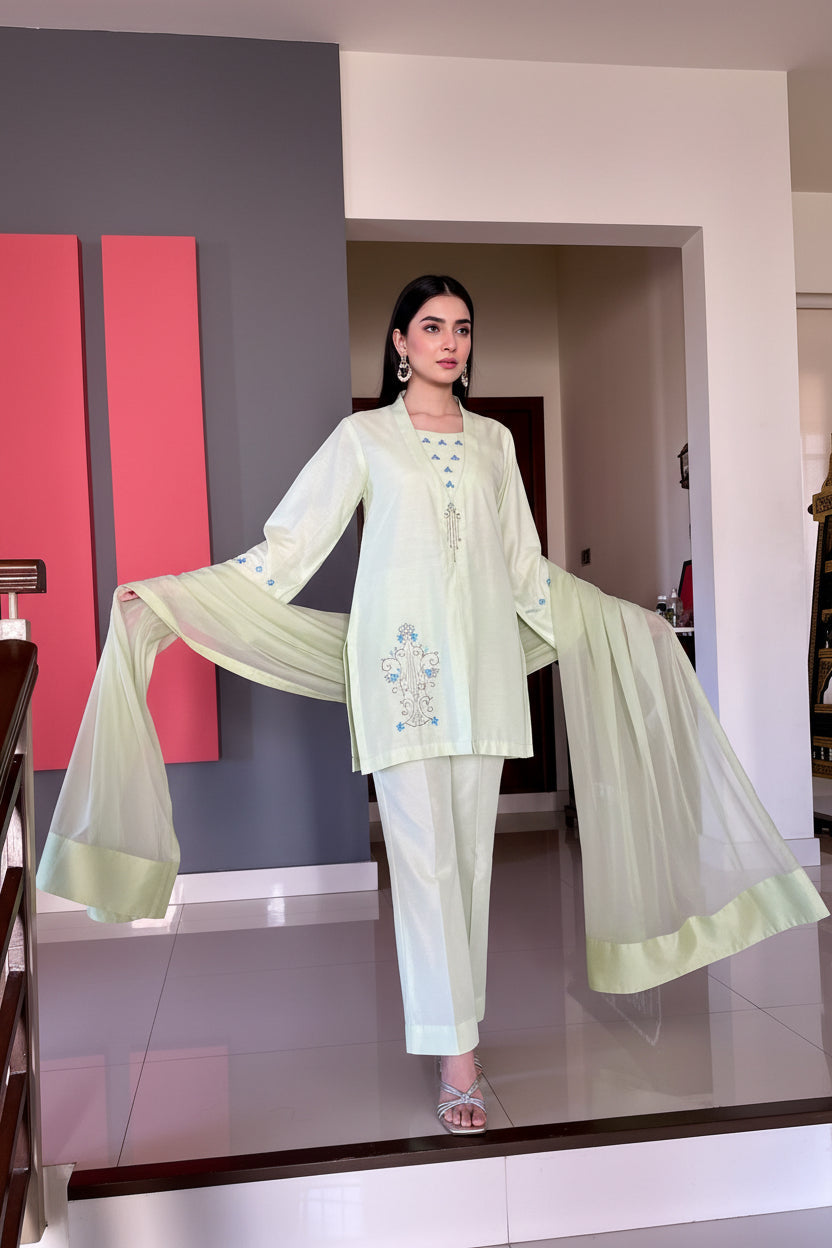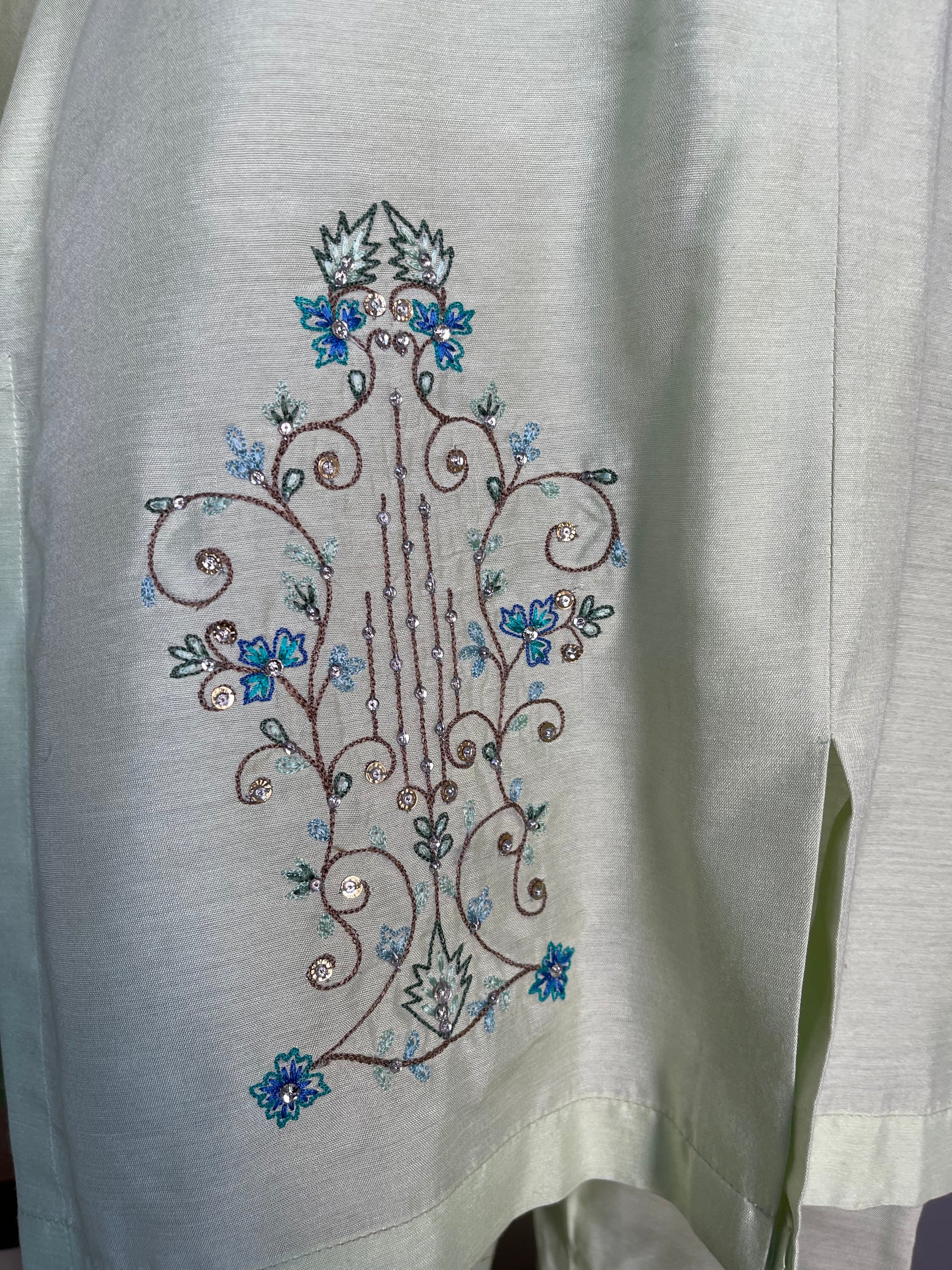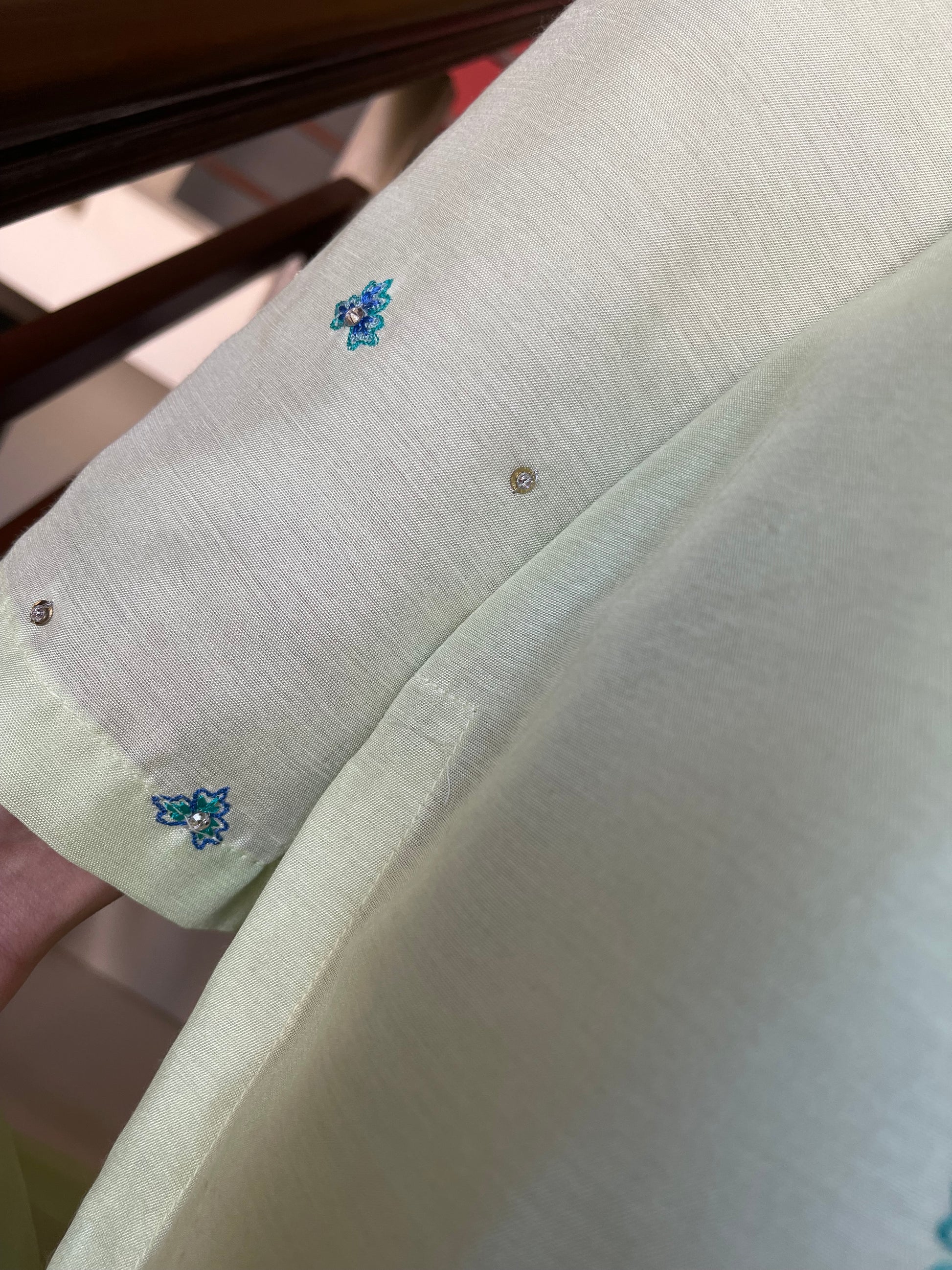 Shirt: Front-open short shirt with light thread embroidery & handwork