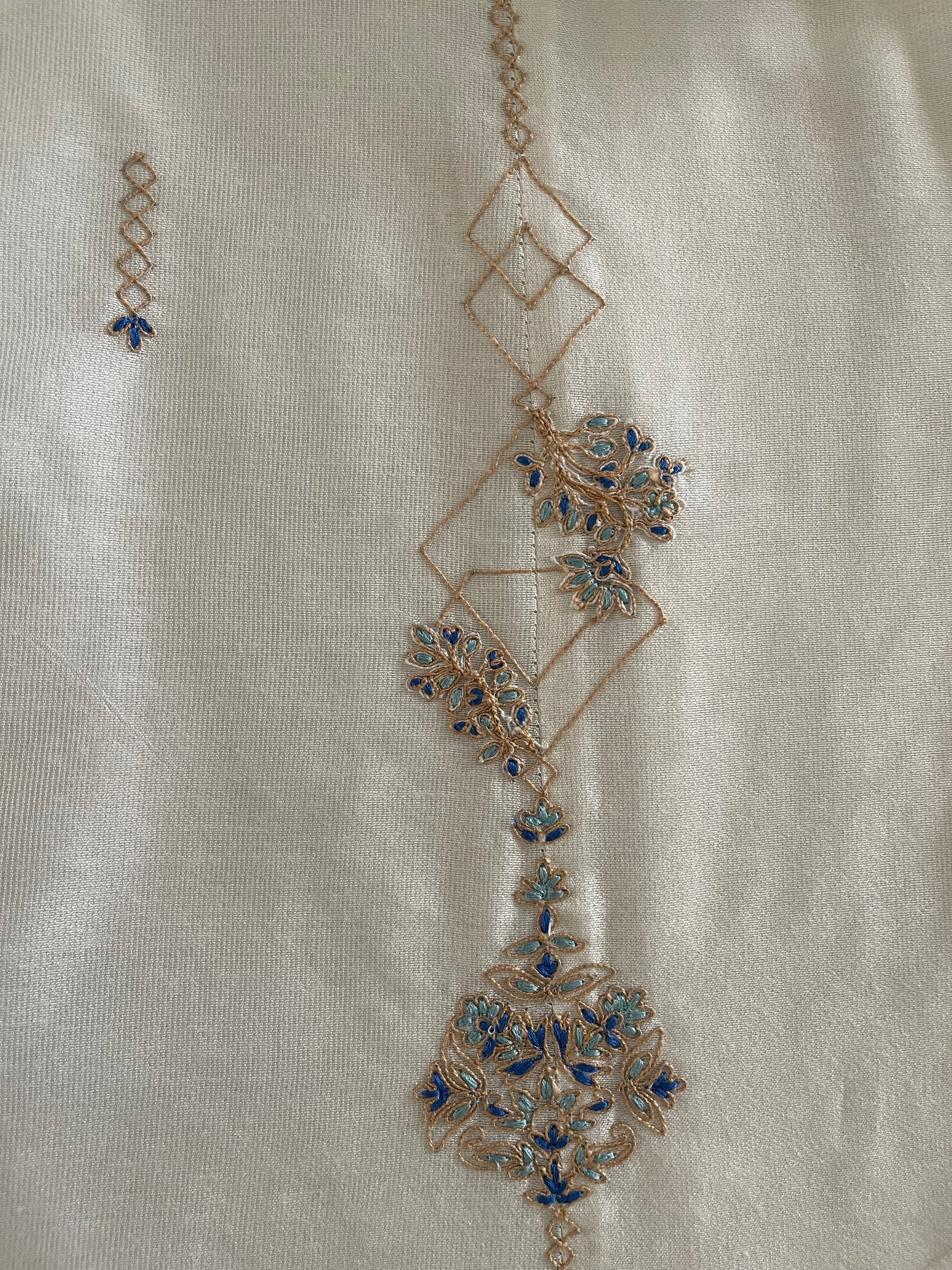 Offwhite khaadi Silk shirt 45 length with silk pants and inner