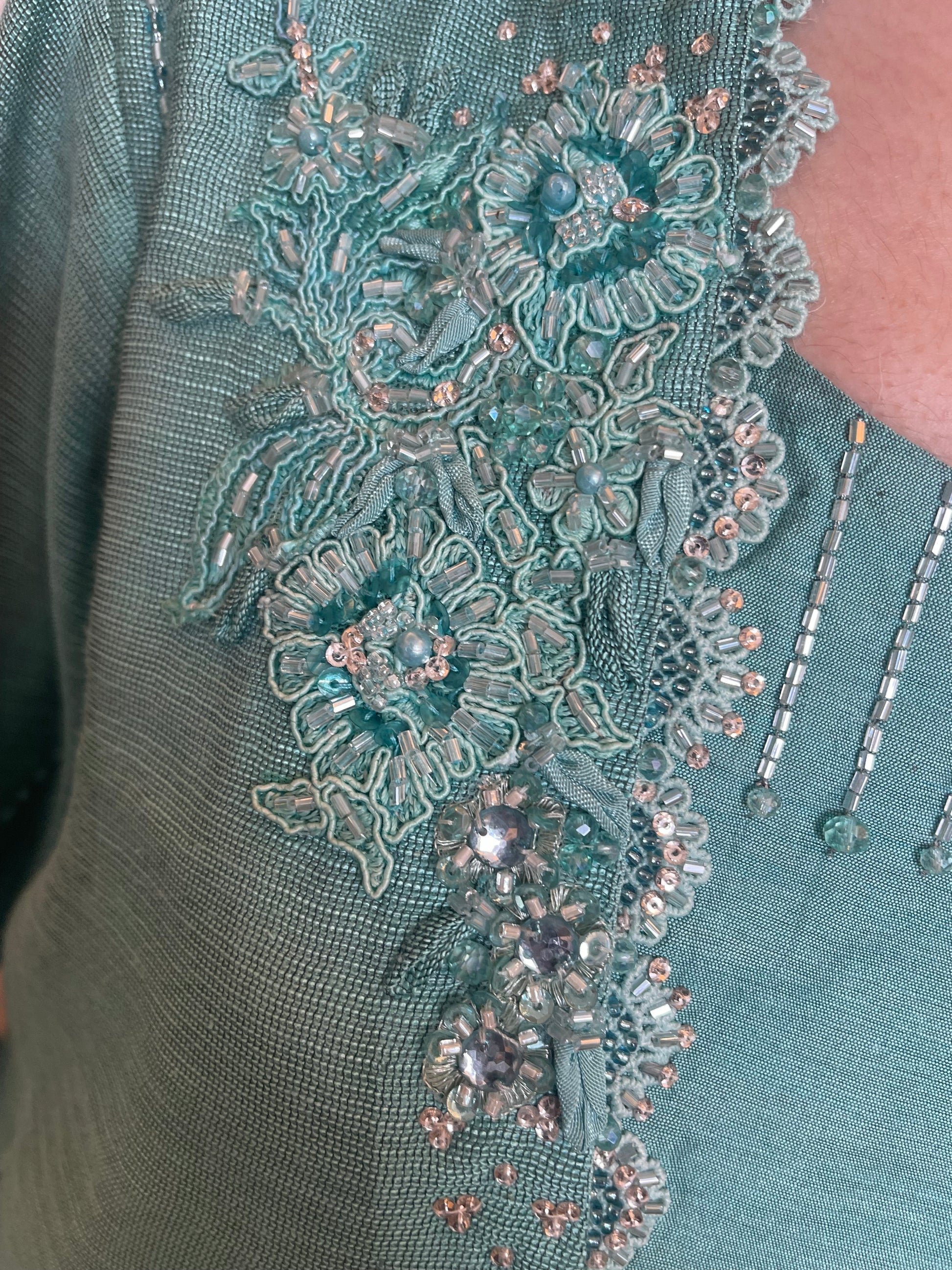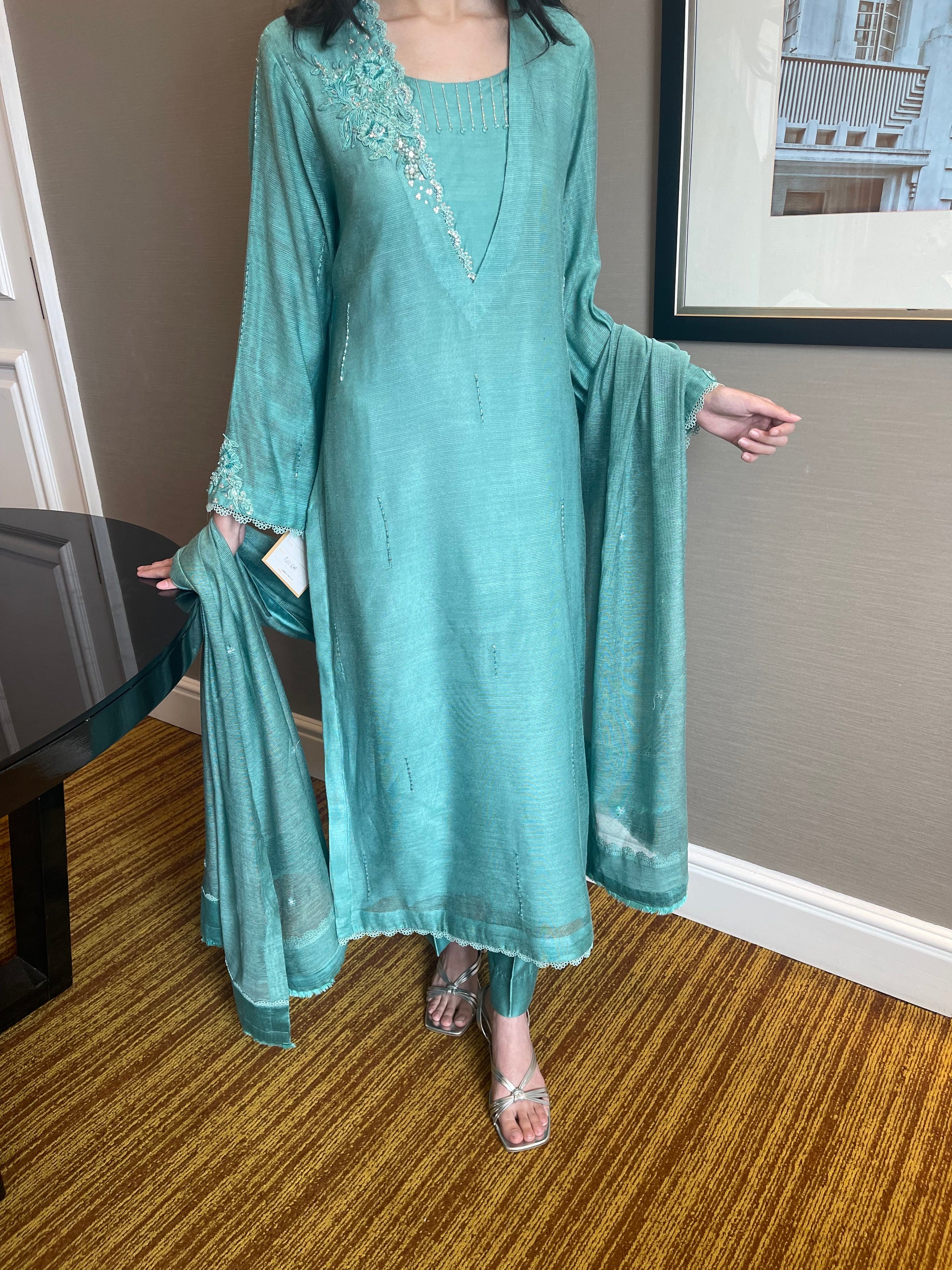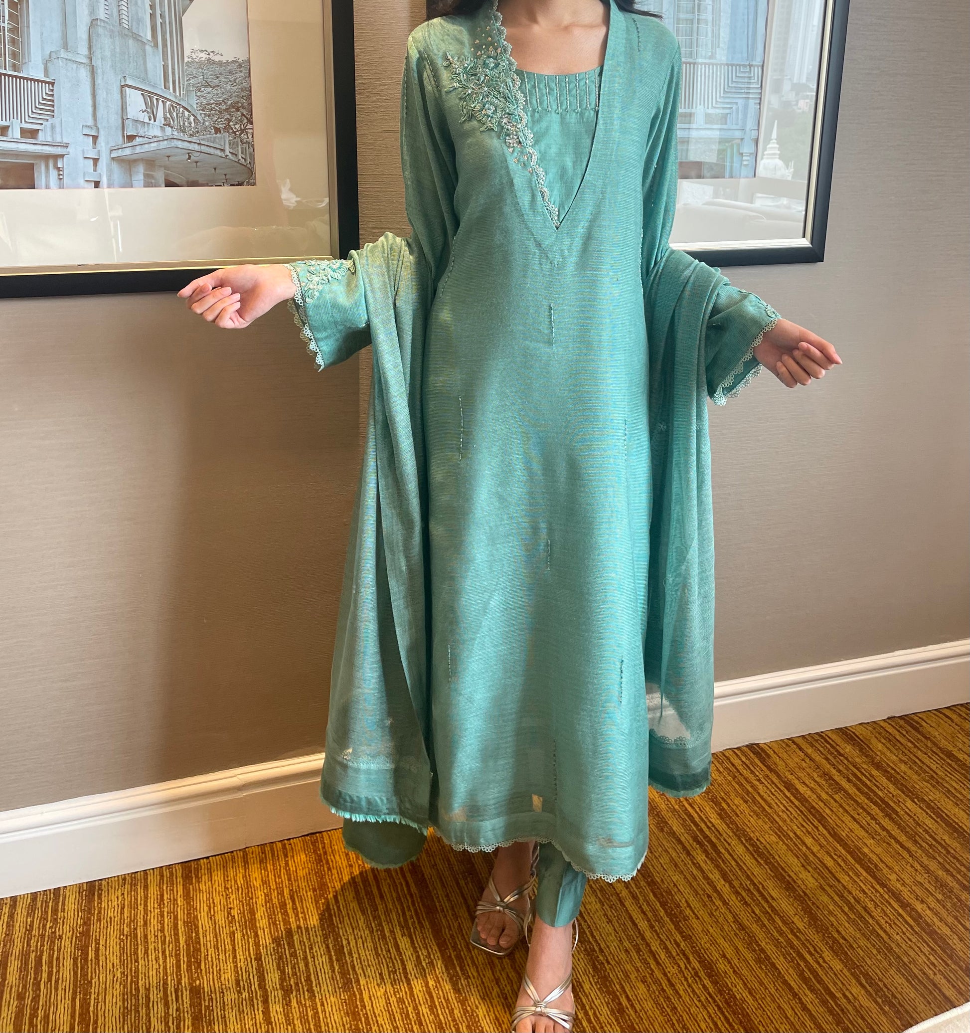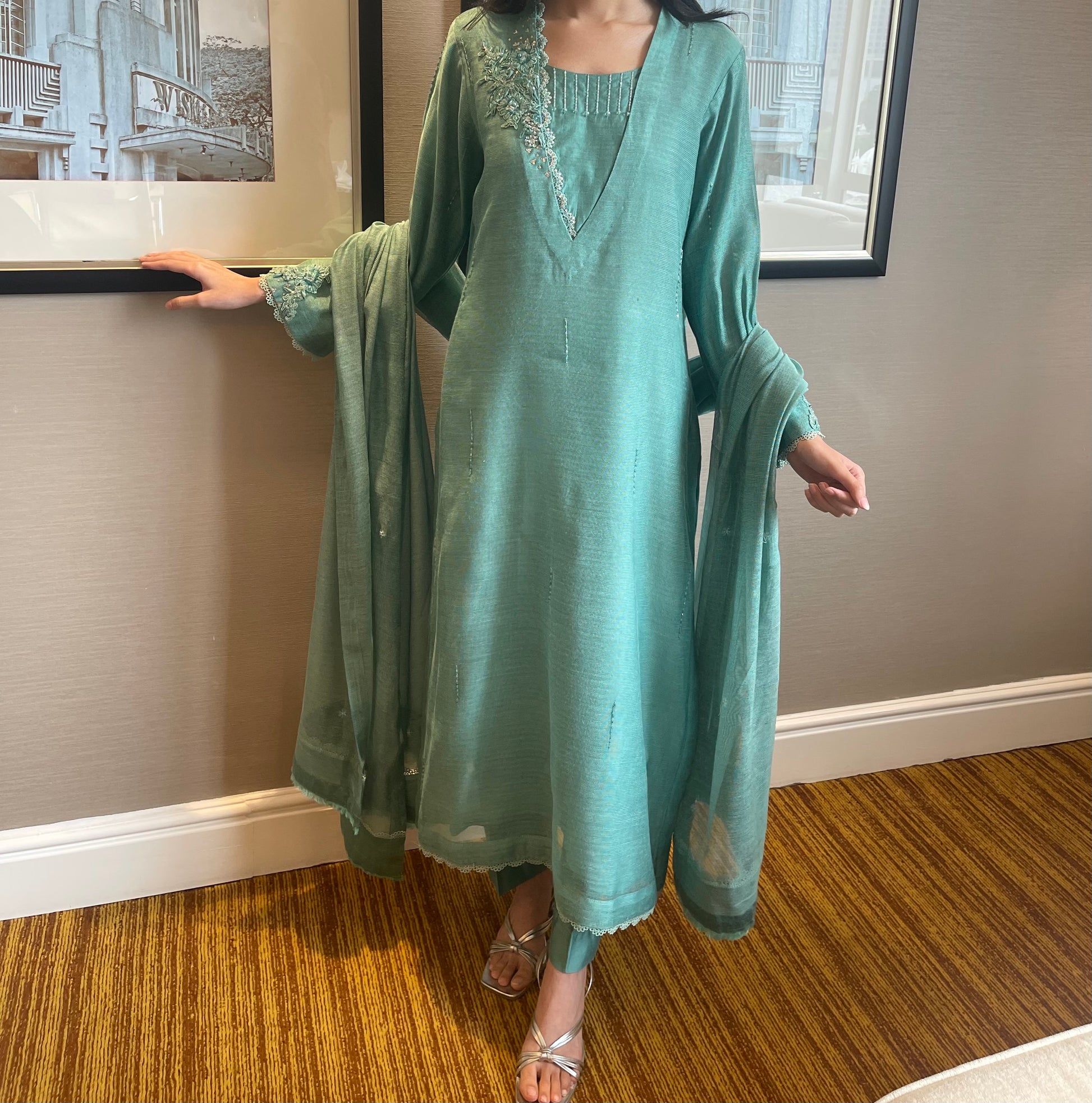 Ferozi green cotton net shirt and dupatta