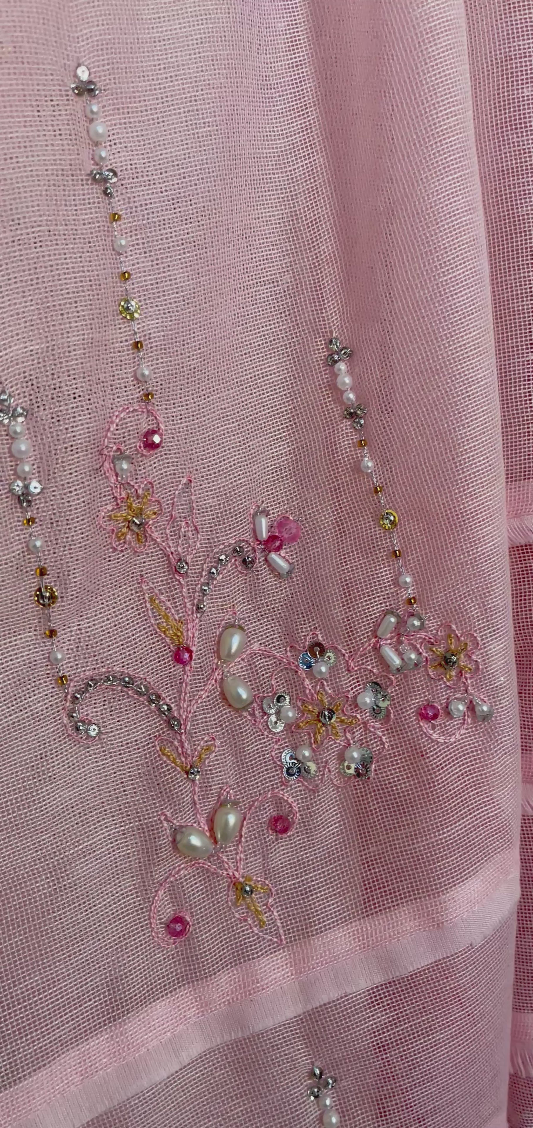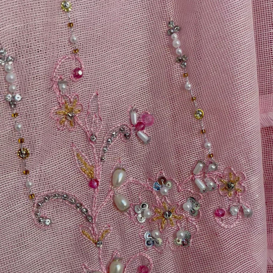 - Work: Thread embroidery with handwork pearls & pink crystals
